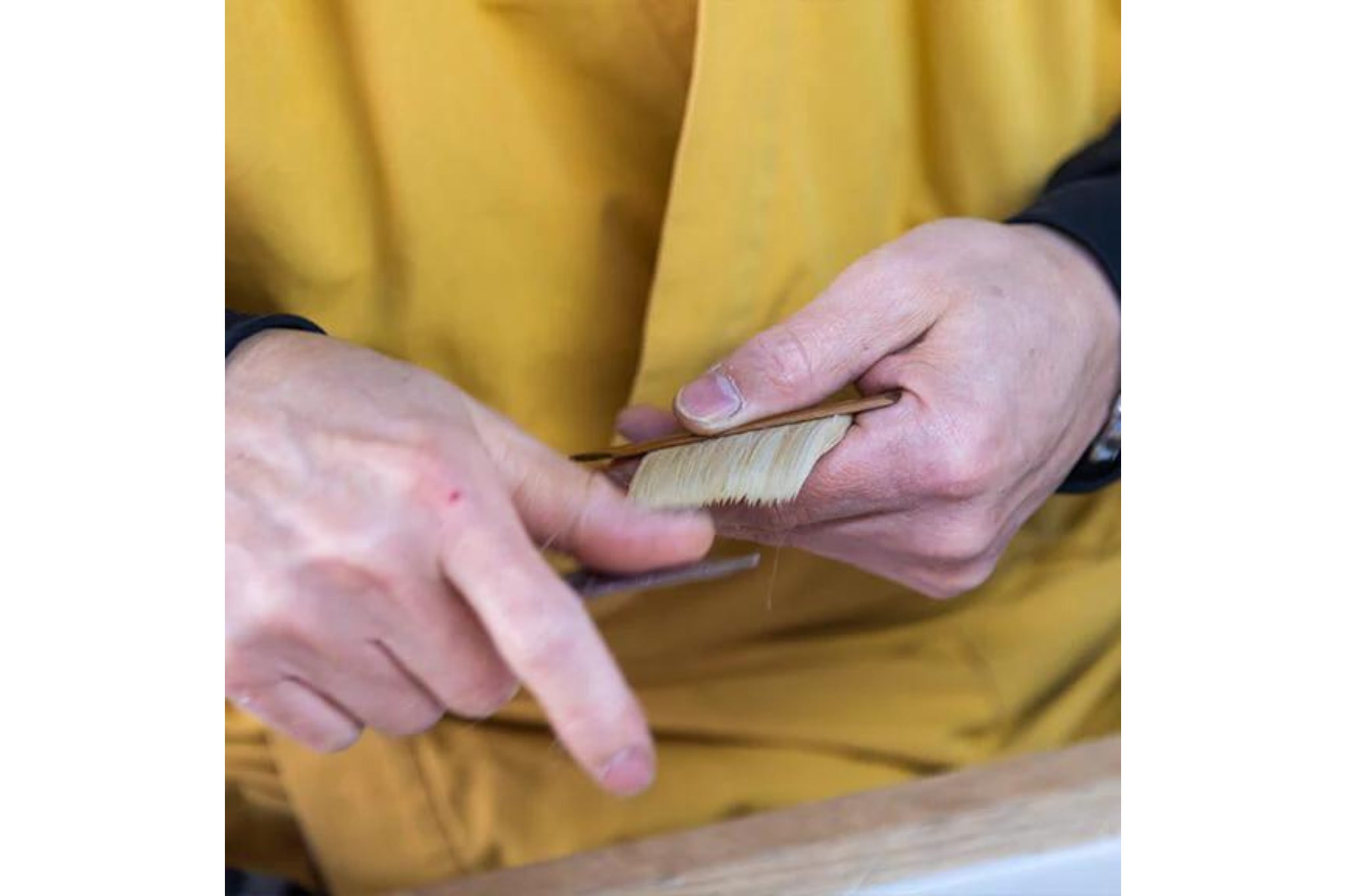その秘密は、厳選した柔らかい天然毛を一切カットせずに、 職人の手で一本一本揃えた毛先にあります。