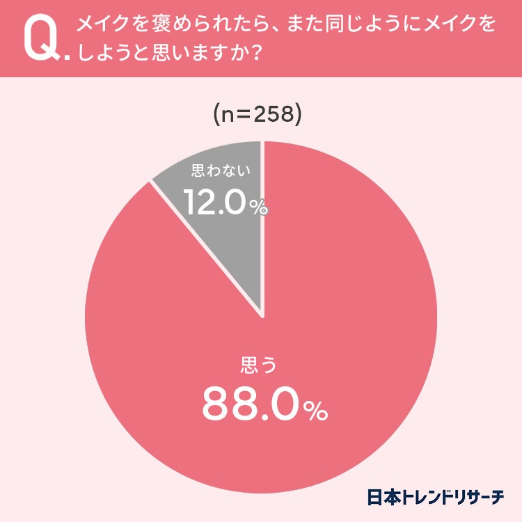 88%の方がメイクを褒められたら、また同じようにメイクをしようと「思う」と回答しています。