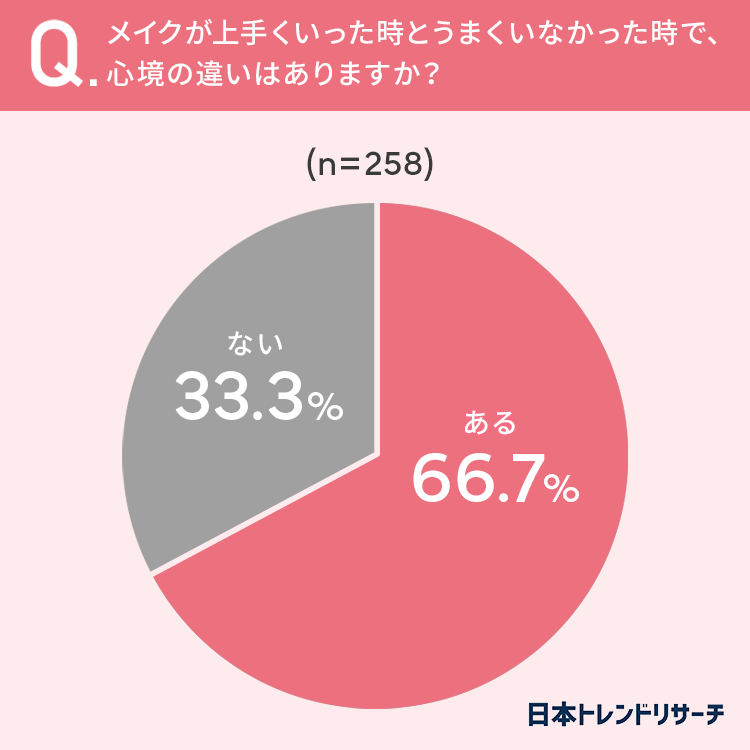 66.7%の方が、メイクが上手くいった時とうまくいなかった時で心境の違いが「ある」と回答しています。