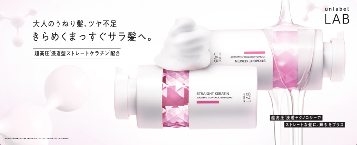 アンレーベルラボは、集中美容液発想の先進のヘアケアテクノロジーで、まっすぐ整ったきらめく美髪を手に入れる、うねり集中対策ヘアケア。独自の超高圧※¹浸透テクノロジーが叶える、ユニークで効果的なロジックが、大人の髪をうねり、ツヤ不足から解放し、まっすぐできらめく髪質に整えます。