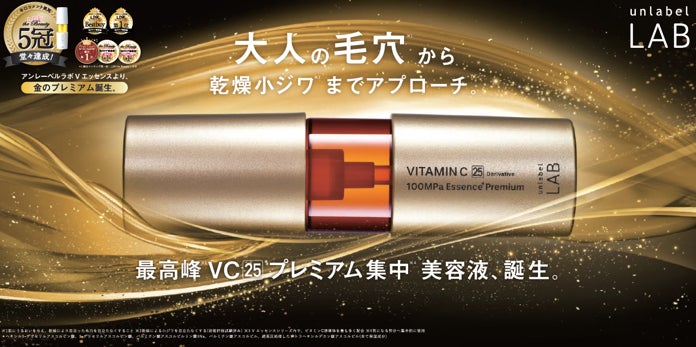 JPSLAB株式会社は、多様化する毛穴悩みに応えるために、LDK5冠達成*した大人気のバズり美容液アンレーベルラボVエッセンスをさらに進化させた最高峰※⁴のビタミンC濃度の金のVエッセンスプレミアムを発売します。
