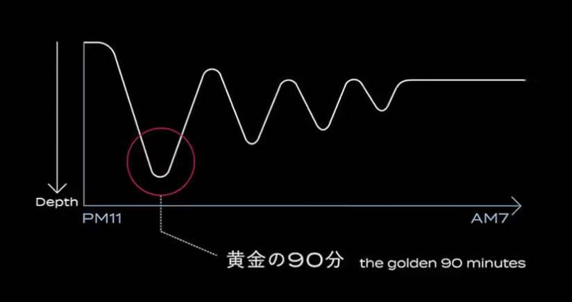 入眠直後のおよそ90分間、一番深いノンレム睡眠がとれる時間をブレインスリープでは「黄金の90分」と呼んでいます。