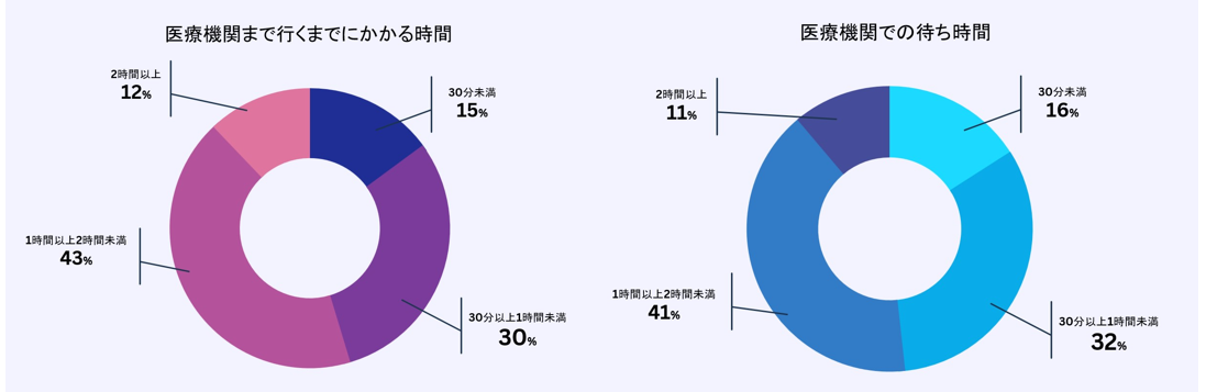 弊社では、不妊治療患者向けアプリ「cocoromi」の全国ユーザーに向けたアンケートを実施し、通院負荷の現状について調査(n=458)を致しました。その結果、医療機関まで1時間以上の通院時間を要している方が全体の55%、さらに医療機関での待ち時間についても1時間以上と回答された方が全体の半数以上いることが分かりました。体外受精などの不妊治療では1か月に4回程度の頻回な通院が必要となるため、仕事をしながら日常的にこのような時間を確保しなければならず、やむを得ず仕事を退職、もしくは治療を断念せざるを得ない状況が明らかになりました。