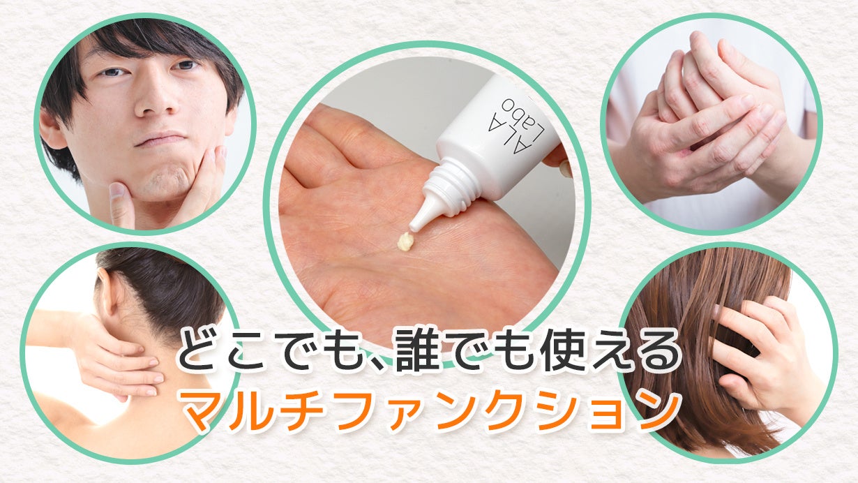 「本当に必要なものを必要な分だけ使えてシンプルでありながら良質な製品をつくりたい」その思いを特別なアミノ酸である5-ALA(5-アミノレブリン酸)の特性を活かして実現したい。その一心で数えきれないほどの試行錯誤を経て、ついに誕生したのが「アララボ マルチファンクションジェルクリーム」です。
