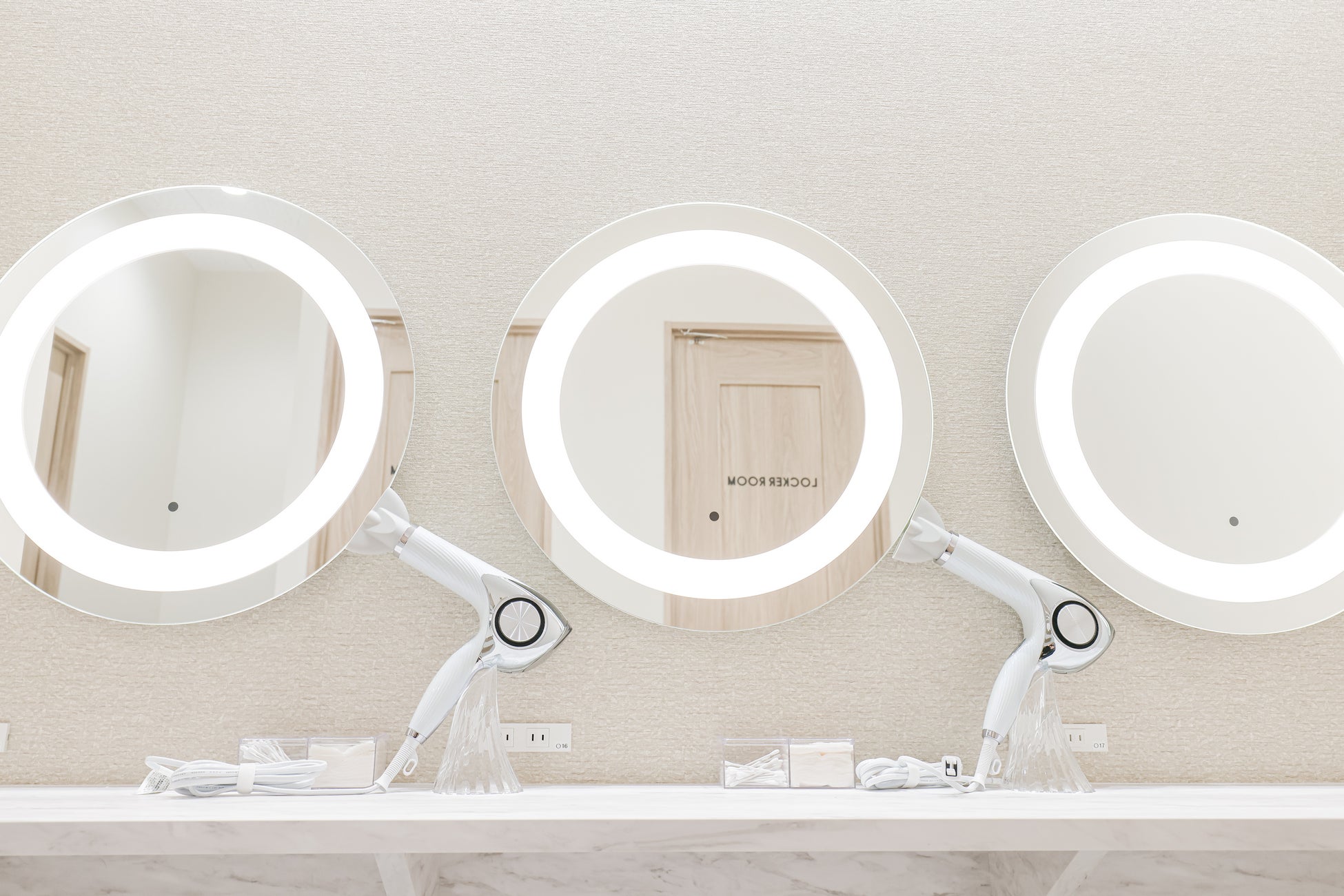 女性に人気のReFa(リファ)のドライヤーに加えて、ヘアーアイロンも完備。シャワーのご利用、ゆったりとしたパウダールームによって、施設利用後の予定もばっちり準備が可能です。