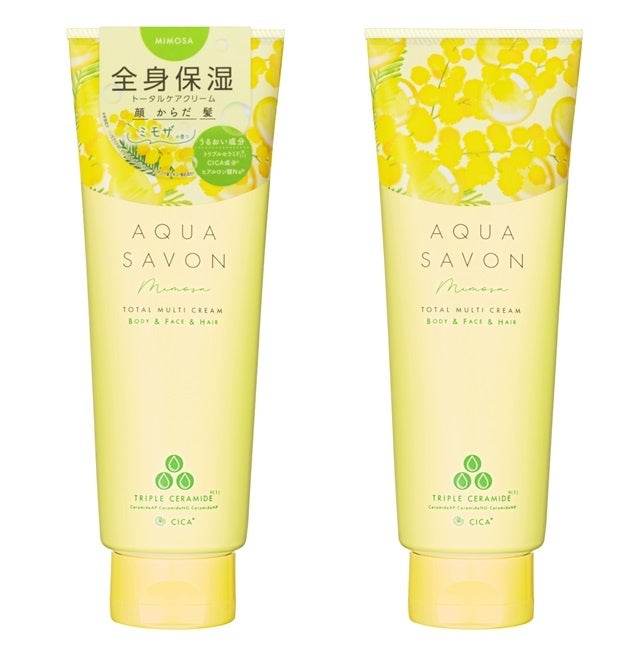 早春の頃に小さく黄色い花を咲かせるミモザは、春の訪れを告げる花として近年人気を集めています。また3月8日は、女性の社会参画やジェンダー平等を願う日として国連が制定した「国際女性デー」で、イタリアではその日に女性に感謝の気持ちを込めてミモザを贈ることから「ミモザの日」とも呼ばれており、日本でも様々な活動が行われるなど、ミモザが注目されています。「サクラフローラルの香り」「きんもくせいの香り」「ゆずの香り」など季節の香りが人気の「アクア シャボン」から、待望の『ミモザの香り』が登場しました。『オードトワレ』『ハンドクリーム』『トータルマルチクリーム』『フレグランスヘアオイル』と、生活シーンに合わせて選べるアイテムをラインナップしています。