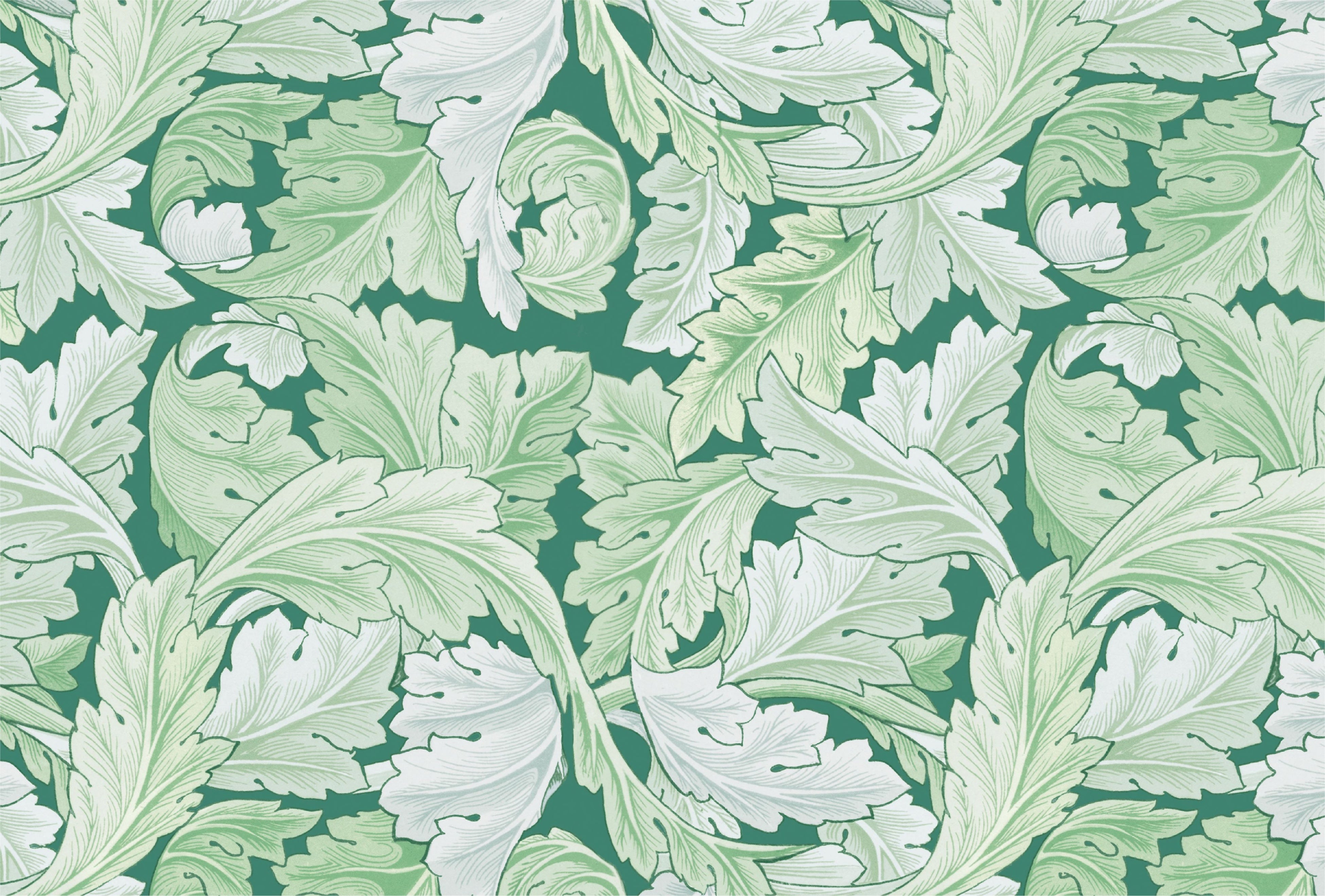 ウィリアム・モリスの作品の中でも最も覇気に満ちたもので、1880年代後半のより豊かで充実した作風を先取りしたものといえる。古代ギリシアで使われたアカンサスという古典的な植物文様をダイナミックに配置。