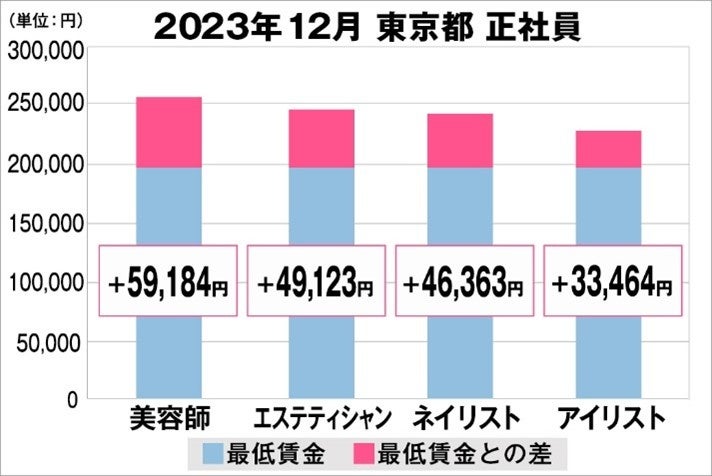 Zenken株式会社(本社:東京都新宿区、代表取締役社長:林 順之亮)は、2023年12月に「最低賃金から見る美容業界の給料調査」を実施しました。本調査は、美容業界専門の求人サイト『美プロ』に掲載されている求人募集時の給料を抽出し、職種別・雇用形態別・地域別の最低賃金との差を算出しました。