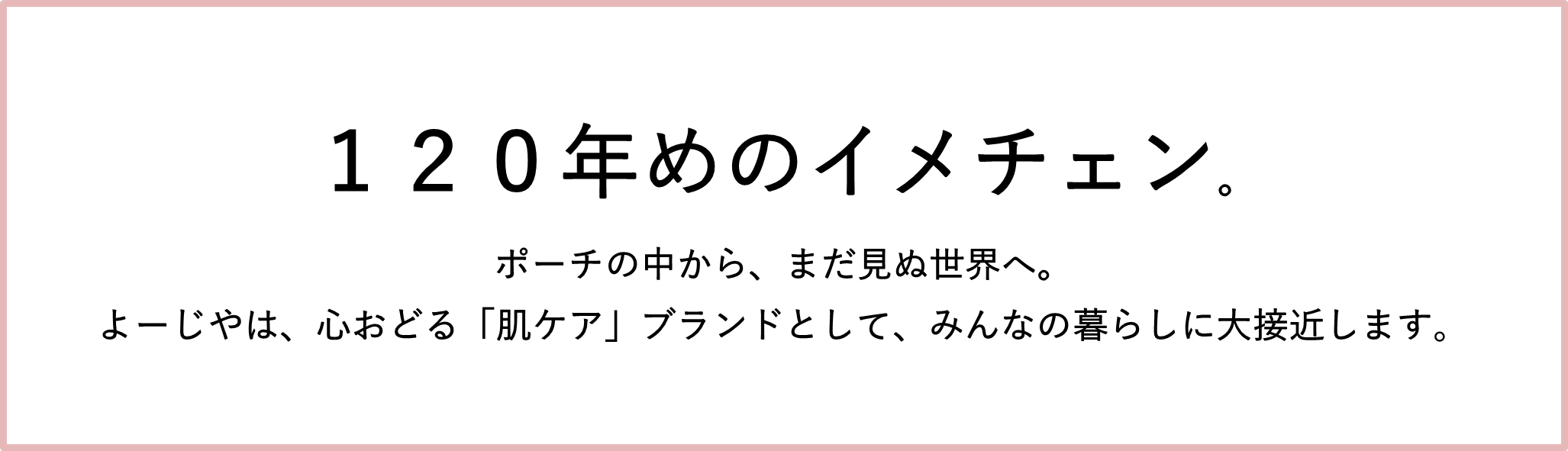 これまでのよーじやが築き上げてきた、高品質、肌にやさしいモノづくりのイメージはそのままに。「肌ケア」ブランドとして、より多くのお客さまに、身近に感じていただける存在になりたい。その想いを込めて、「120年めのイメチェン」をテーマに2024年はよーじやグループを支えてくださるすべての方へ、120周年を記念した商品の販売やキャンペーンなど、1年を通してみなさまに楽しんでいただける取り組みを予定しております。