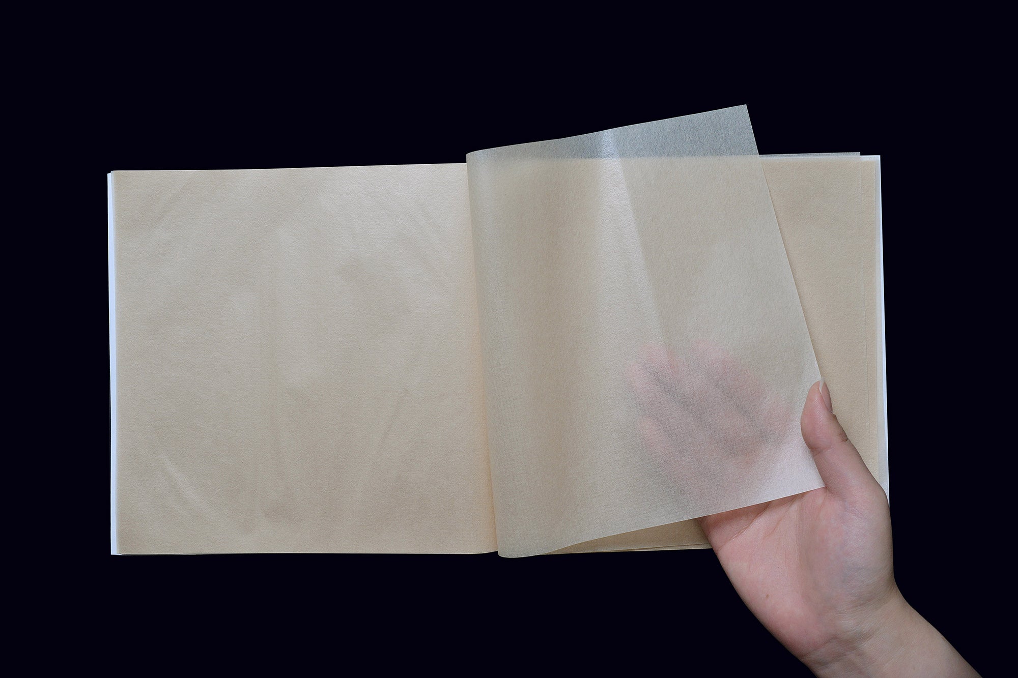 よーじやでは、実際に金箔をたたく時に使用できる特殊和紙を、「脂とり専用化粧紙」として開発しました。この特殊和紙を箔打機で何度も繰り返したたくことによって、紙の繊維が活性化されて皮脂を吸い取るようになります。さらに、紙の表面が滑らかになり、肌あたりもなめらかになります。