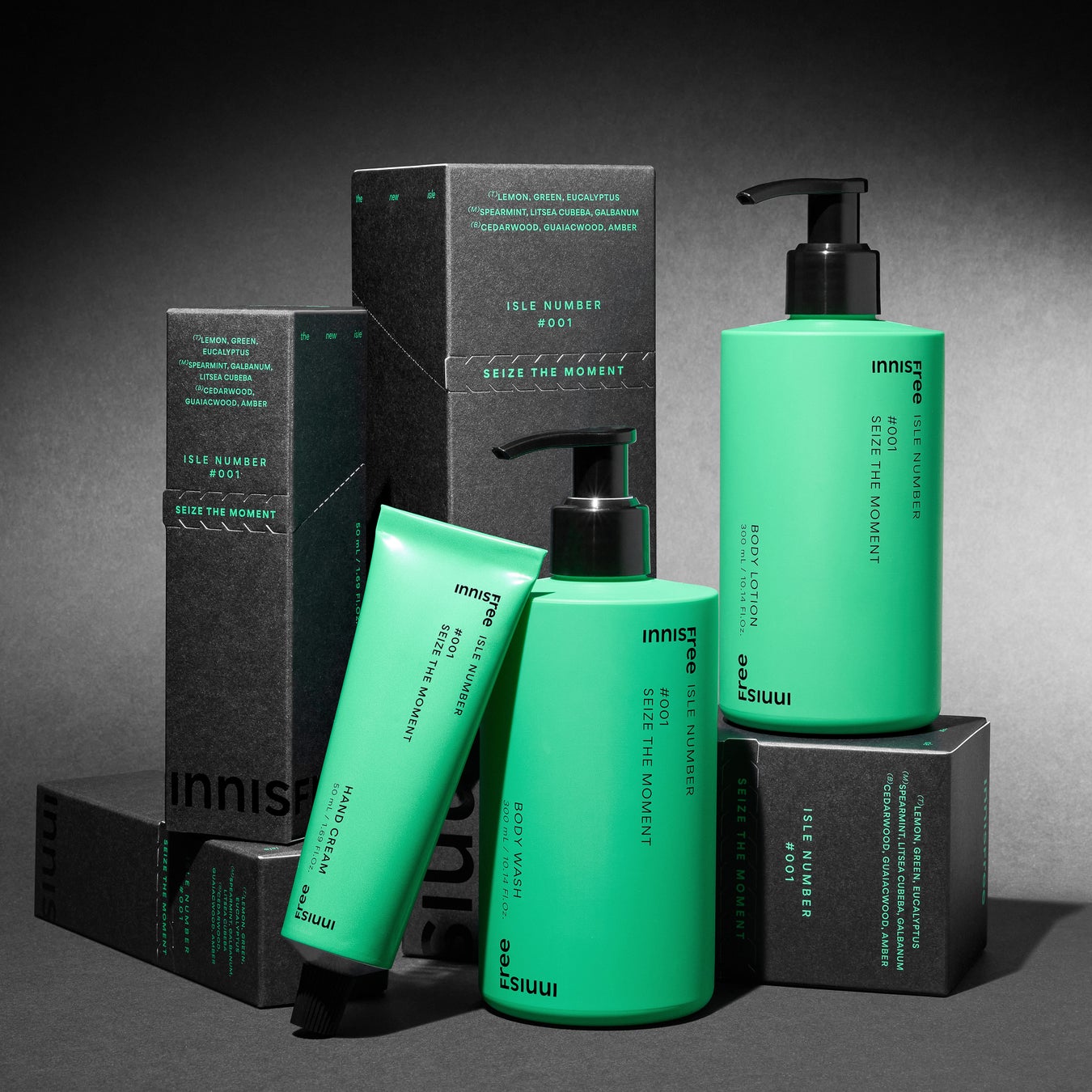 グリーンとブラックのパッケージが目を引くボディアイテム『アイルナンバーライン』が表参道店にて先行発売、3月1日(金)より公式オンラインショップにて発売を予定しております。いままでのイニスフリーにはなかったウッディで重厚感のある香りは、男女問わずお使いいただけます。