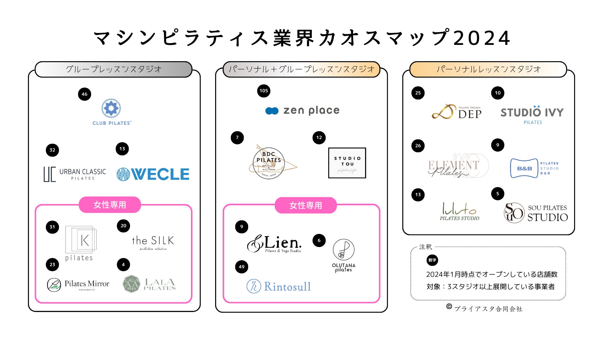国内最大級ピラティススタジオ紹介メディアを運営するプライアスタ合同会社がカオスマップ公開(各事業者のスタジオ数記載あり)