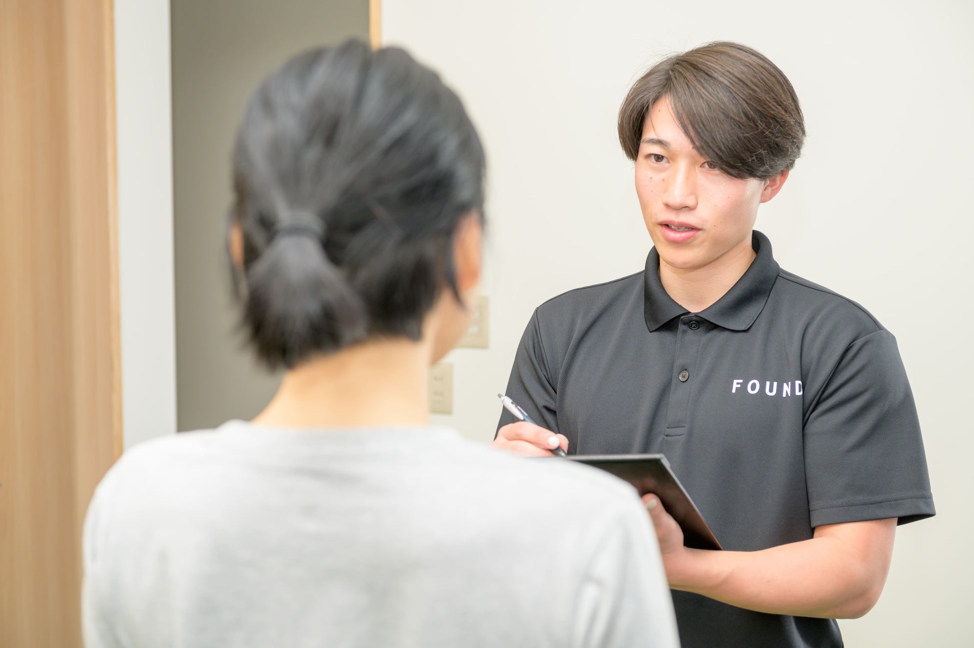 ダイエットやボディメイクだけでは解決が難しい姿勢や慢性的な肩こり、腰痛などの悩みに対して身体のプロであるFOUNDのパーソナルトレーナーが根本原因の追究ならびに解決へ導きます。会員様一人一人にパーソナライズされたプログラムを設計することで、トレーニング/施術の効果を実感し、身体/体調の変化を感じているという声をいただいています。
