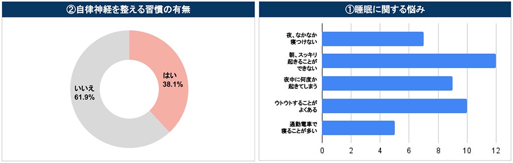 事前調査の結果、全体の約57%が「朝スッキリ起きることができない」と回答。 一方、自律神経を整えるために日常的に行っている習慣がある人は、38.1%という結果に。 プログラム参加理由には「睡眠の質を高めたい」「自身にあった睡眠改善の方法が知りたい」といったコメントが多く寄せられ、眠れないことに課題を感じている方が多いことが分かりました。