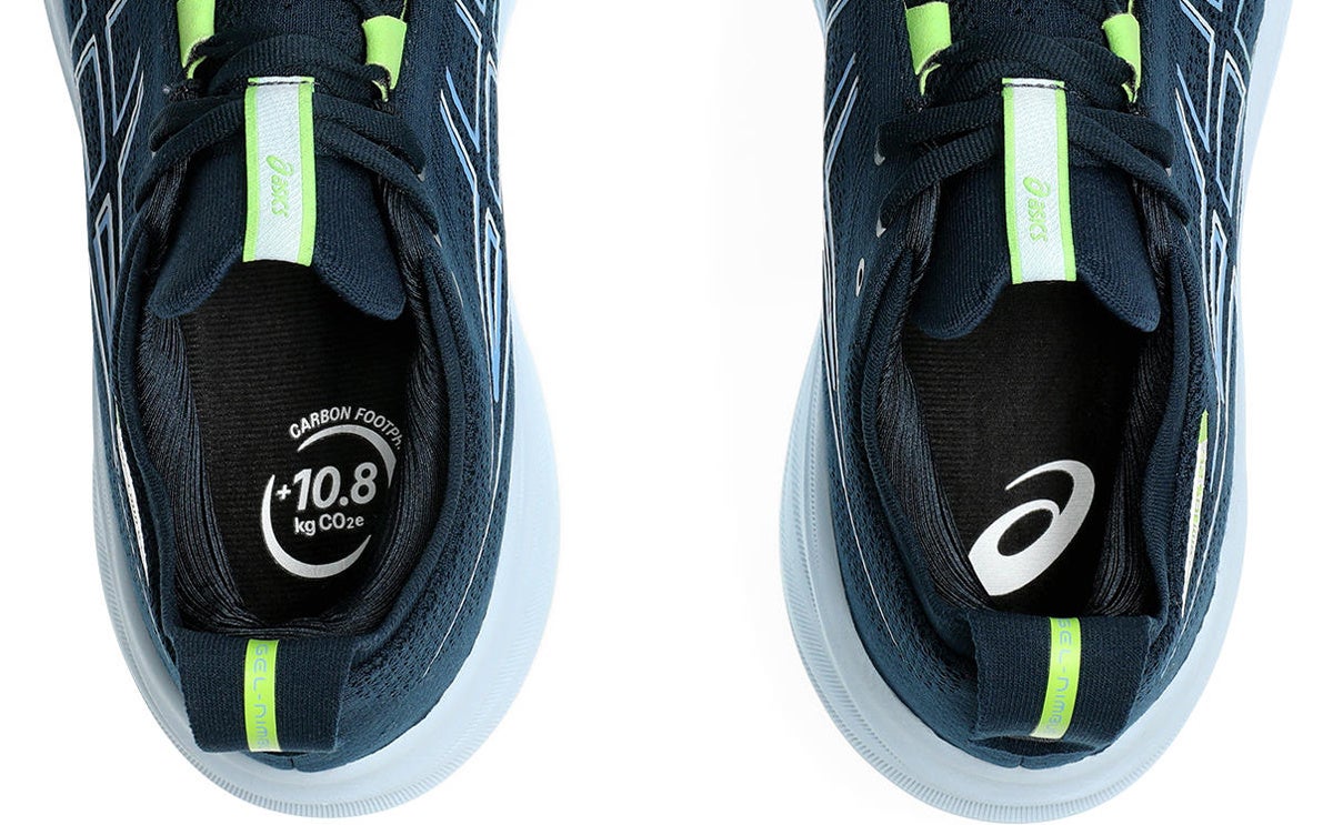 「GEL-NIMBUS 26」のカーボンフットプリントは10.8kg CO₂eで、業界平均よりも25%低い数値です。※