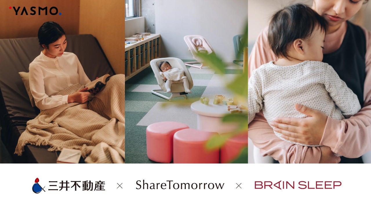 株式会社ブレインスリープ(本社:東京都千代田区、代表取締役社長:廣田 敦、以下「ブレインスリープ」)は、三井不動産株式会社(本社:東京都中央区、代表取締役社長:植田俊、以下「三井不動産」)と株式会社ShareTomorrow (本社:東京都中央区、代表取締役社長:石川憲久、以下「ShareTomorrow」)が2024年1月15日にオープンする保育施設YASMO内にある、ママ・パパ用休息室Nemuro(ねむろ)の睡眠環境に関する監修および睡眠プロダクトの提供を行いました。