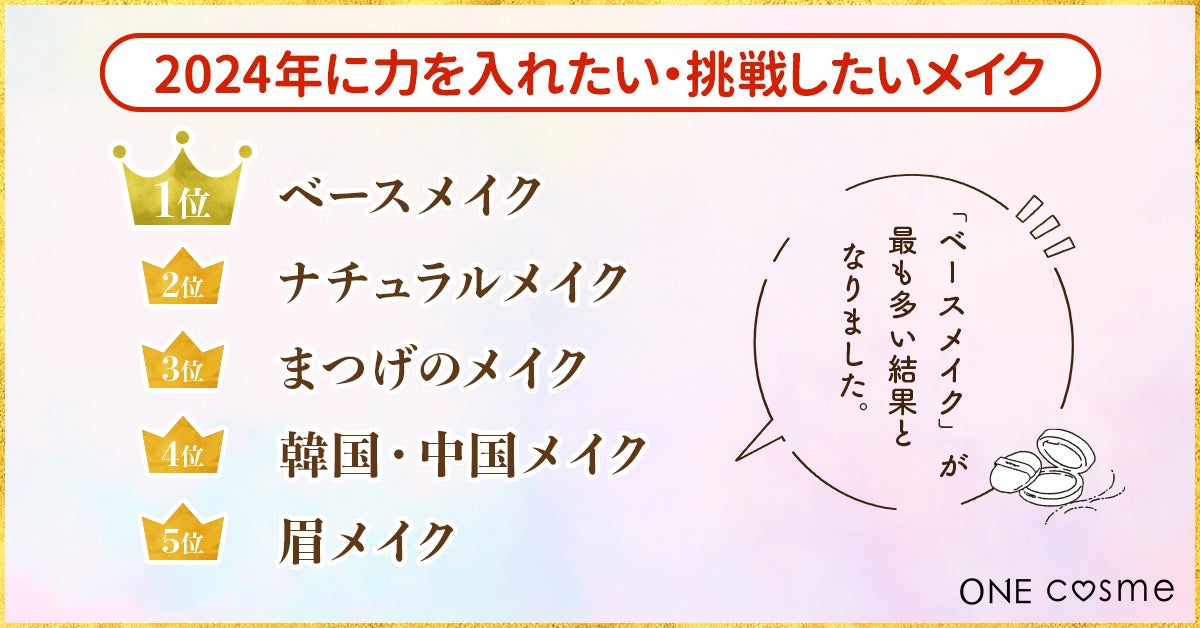 2024年はベースメイクや基礎化粧品に力を入れたい・挑戦したい方が多数!肌をきれいに魅せるためのケアやメイクに注目している方が多い結果に。