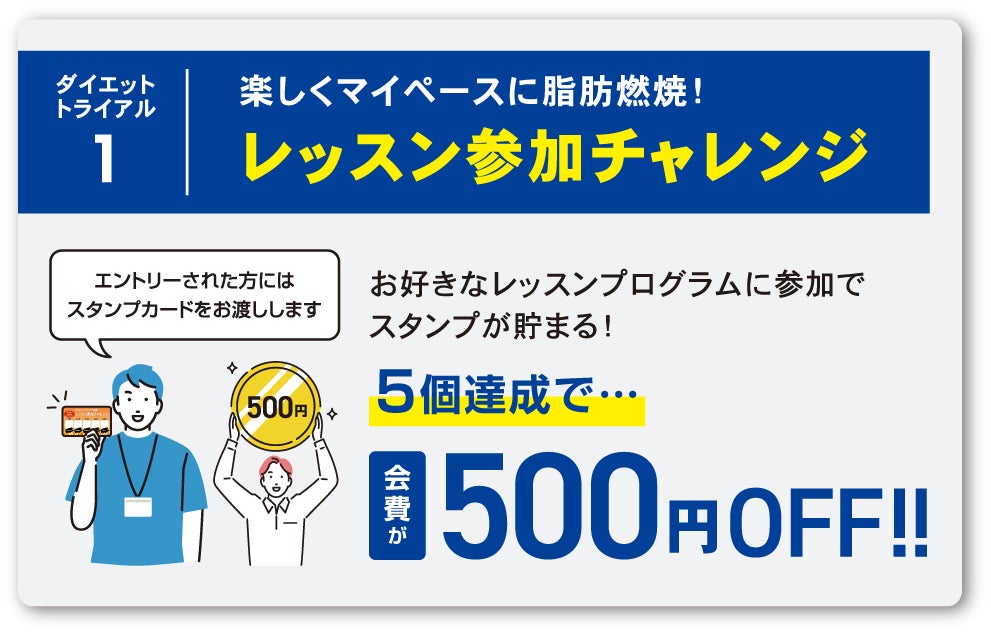 「レッスン参加チャレンジ」にご参加希望の方は、店舗フロントにてスタンプカードをお受け取りください。