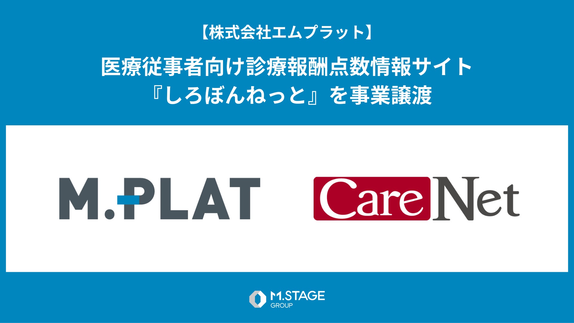 この度、エムプラットは「変化する時代に、進化できる医療経営を」をビジョンに掲げ、医療経営支援事業に経営資源を集中させるため、株式会社ケアネットに『しろぼんねっと』に関する事業を譲渡いたします。44万人を超える会員を有する医療情報プラットフォームを運営し、会員である医師・医療従事者に医療情報コンテンツの提供サービス等を行う株式会社ケアネットへの譲渡により、『しろぼんねっと』をより多くの医療従事者に活用いただくことで、医療従事者のさらなる業務効率化への寄与を狙いとしています。