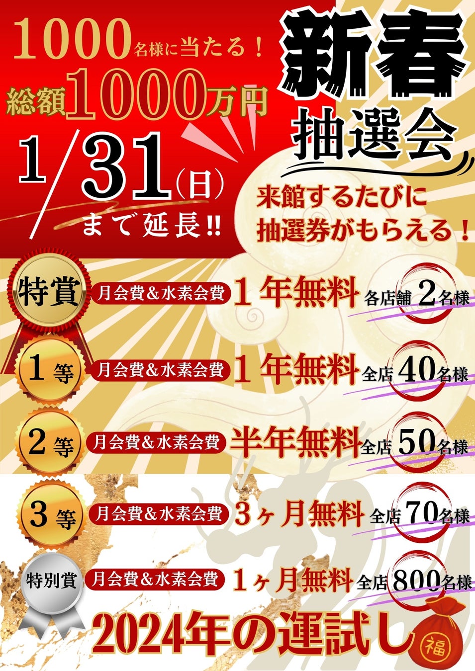 1月31日まで延長いたします!『総額1000万円のお年玉!新春得々入会キャンペーン!』