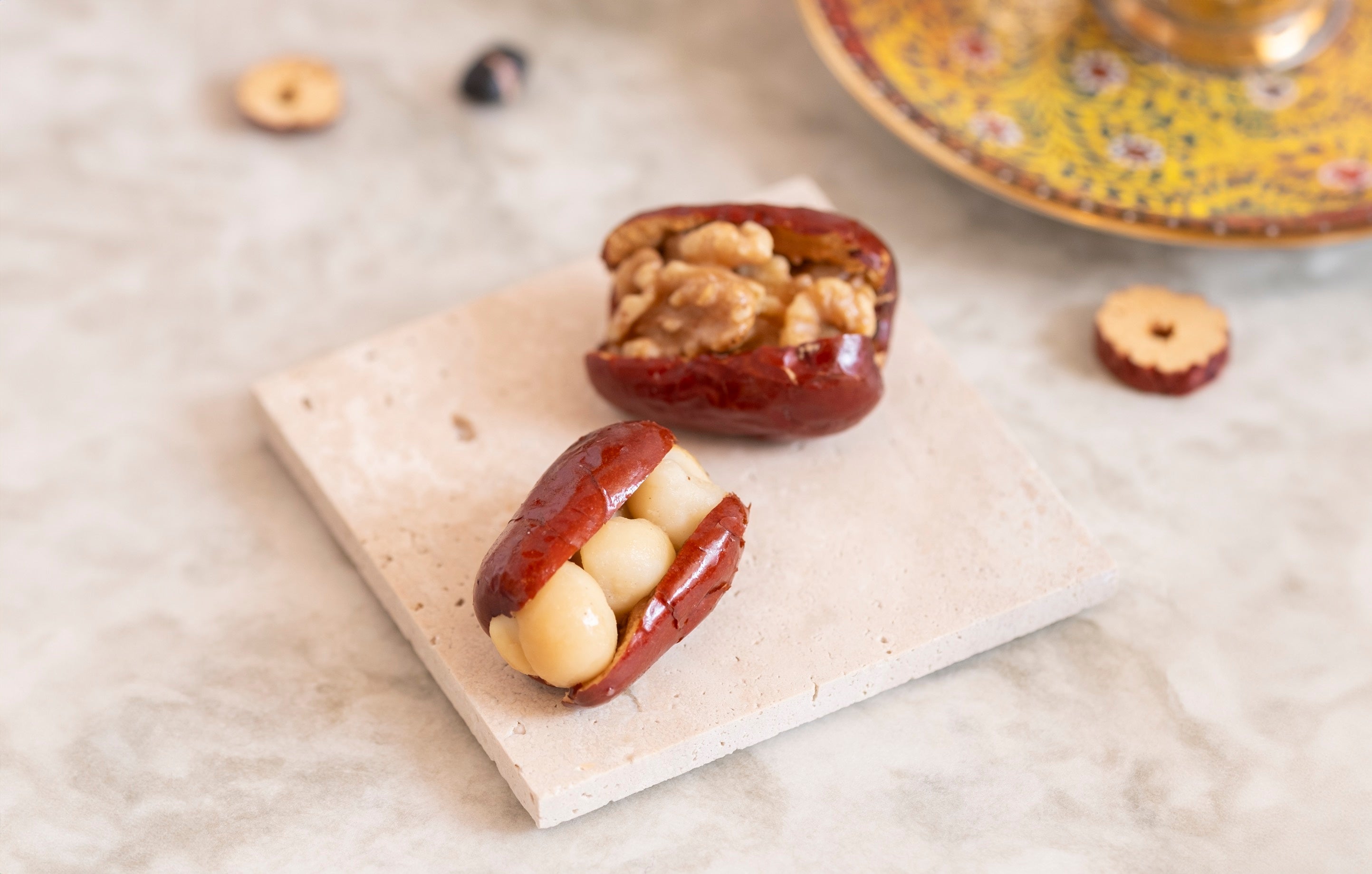 今回、札幌ステラプレイスで先行発売となる新商品「なつめナッツサンド」は、台湾でお土産として大人気の美容や健康によいお菓子です。DAYLILYのふかふかで甘みが深い大粒の棗(なつめ)の間に、くるみやマカダミアナッツをはさみ、てんさい糖でコーティングし、じっくりローストしました。なつめの自然な甘みとナッツの香ばしさがマッチし、1粒で大満足の美味しさです。ご自宅でのお茶時間や、手土産・プチギフトにも最適です。