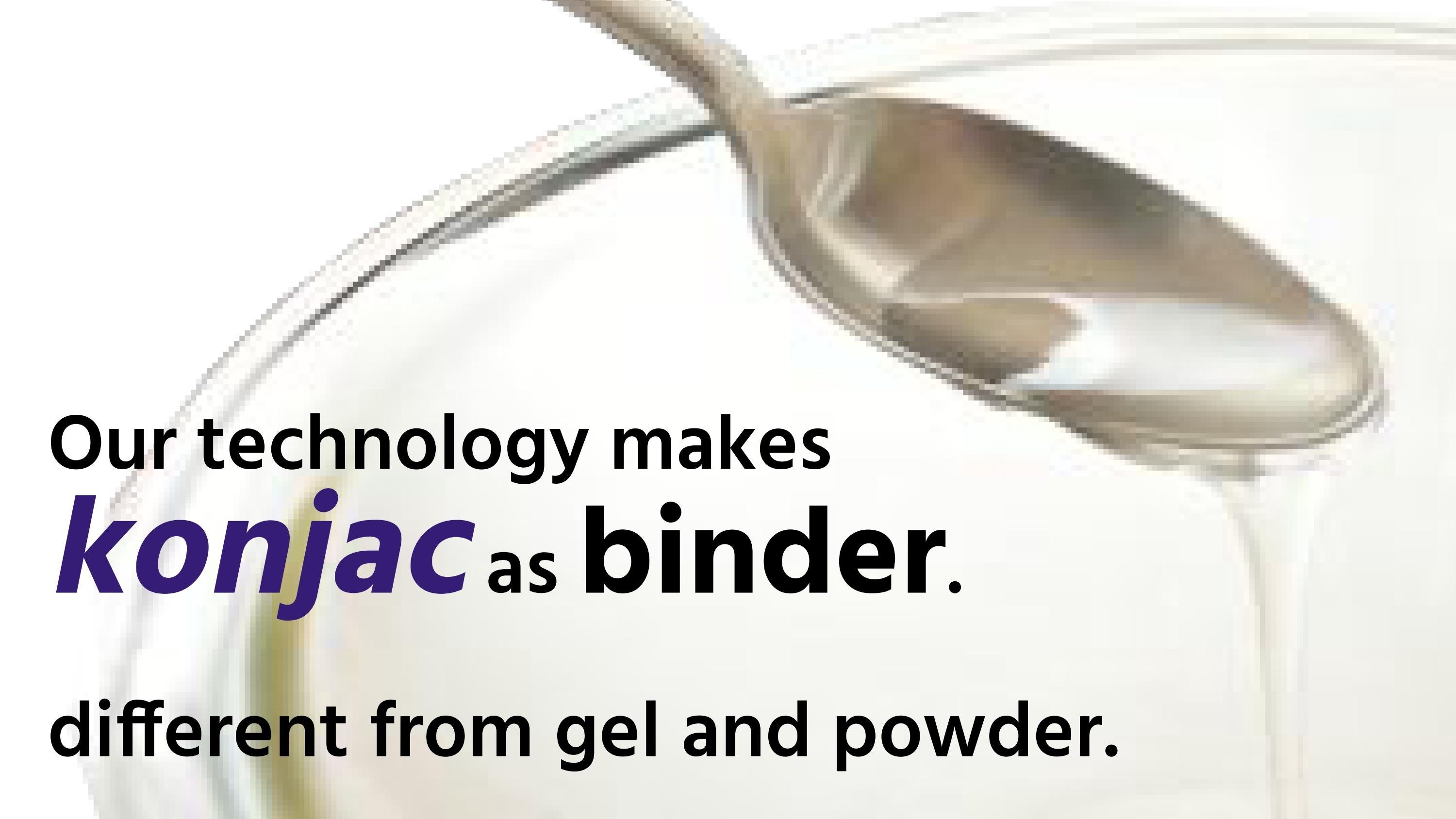 人が食事をするのは、栄養をとるためだけでなく、食べる行為そのものが楽しいからである、と私たちは考えます。一方、糖尿病や高血糖、肥満、アレルギー等、食の制限を持つ人は世界に多数おり、そういった「食の制限」を超え、あらゆる人が「食べる」ことを楽しみ、well-beingを高めるため、当社は日本古来の植物性ヘルシー食材蒟蒻(こんにゃく)に着目。独自の液体蒟蒻素材を用いた結着成型と食感創成の技術開発を行っています。