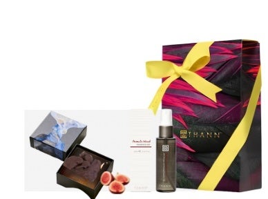 ドライいちじくにダークチョコレートをコーティングした商品とカカオティーで心を癒し、エッセンシャルオイルで心身を満たすスペシャルなセットになっています。
