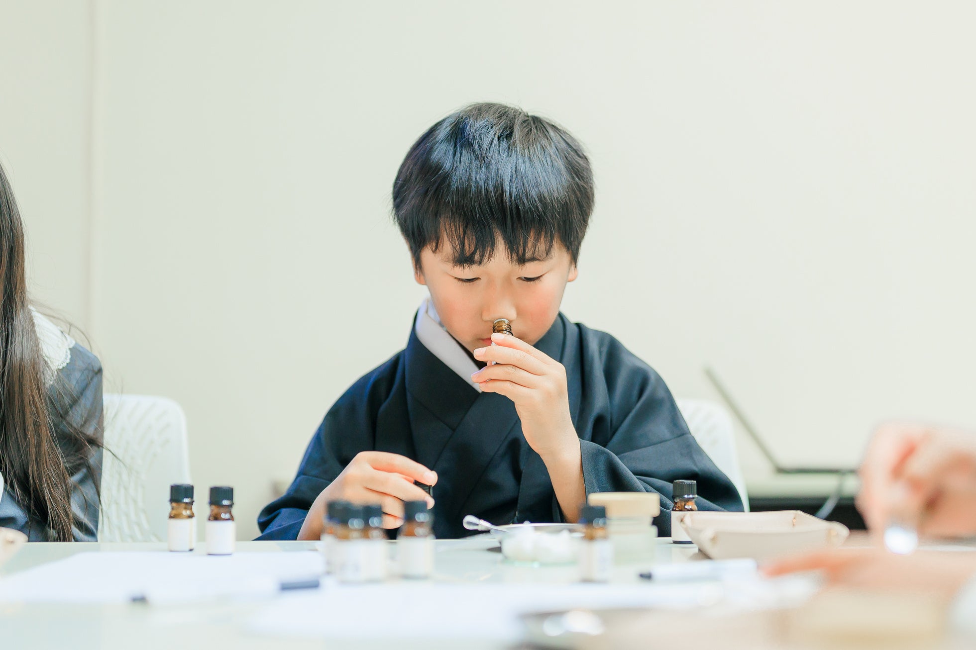 子どもたちは、当社が製品を開発する上で大切にしている「たった1人の悩みを解決することで、世界中の人達の幸せに貢献する」というミッションの説明を受けて、「たった1人の誰のために」、「どんな時に使ってほしくて」、「どんな香りを配合したか」などのプレゼンシートを作成しました。子ども達は親や友人の為に、思い思いの香りを調合し、容器にはデコレーションを施しました。