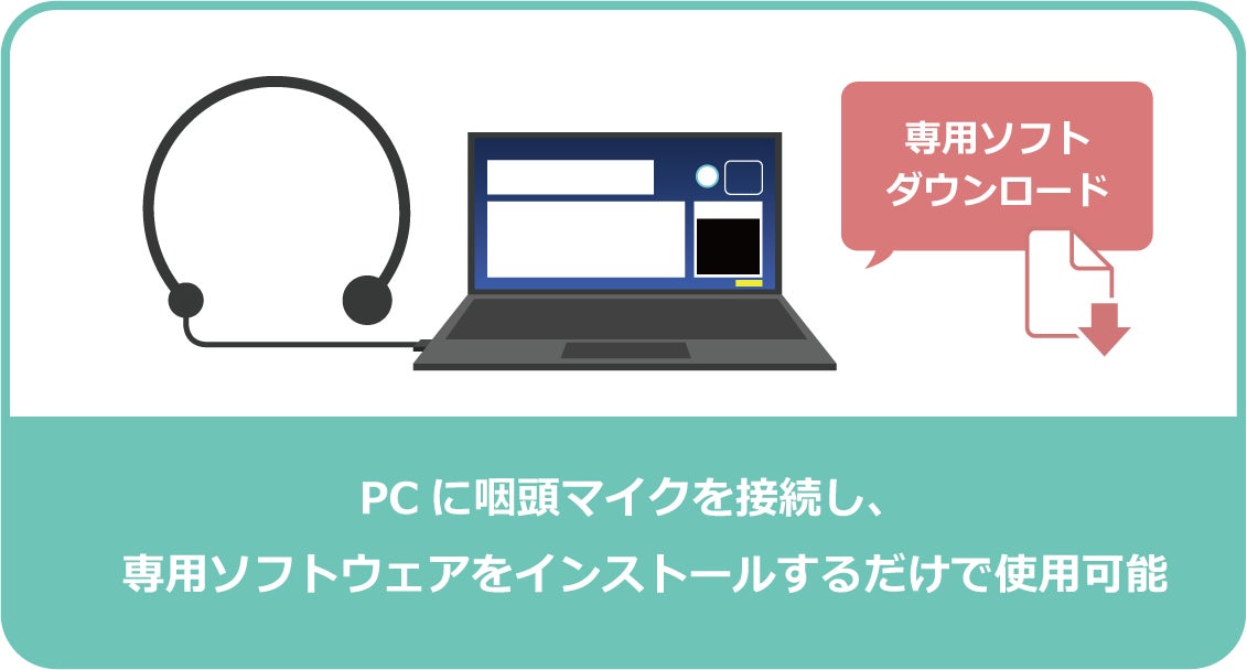 ・咽喉マイクを首に装着し、アプリによる簡単な操作で計測実現