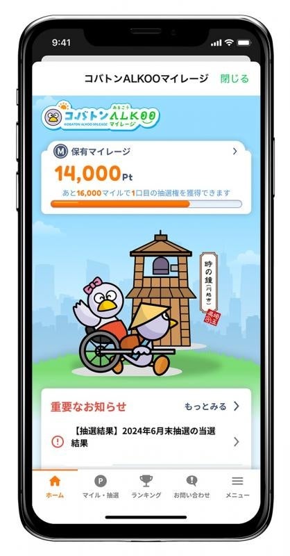 このたび、さらに便利で使いやすく、機能を充実させるため、リニューアルを行い、本日から新たに「コバトンALKOO マイレージ」として運用を開始します。