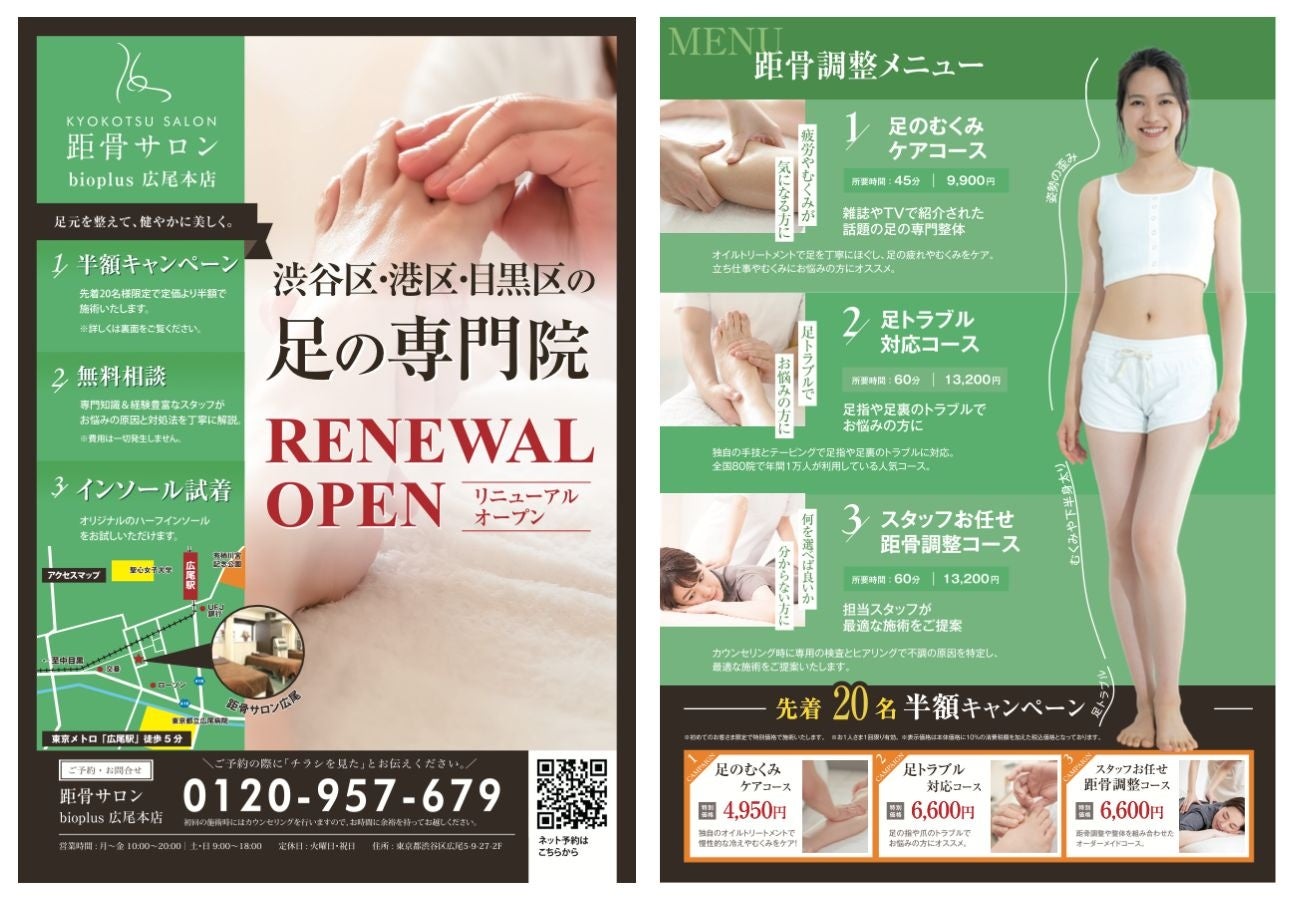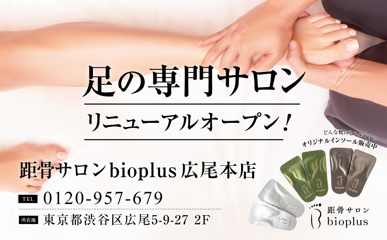 株式会社ビオプラス(本社:東京都港区、代表取締役:鮏川 雄樹)は、2024年1月17日(水)に「広尾鍼灸整骨院」から「距骨サロンbioplus広尾本店」にリニューアルOPENいたしました。
