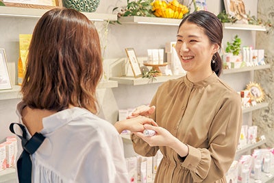 人肌より少しあたたかいお湯で作るクレイパックを店頭で体験いただけます。