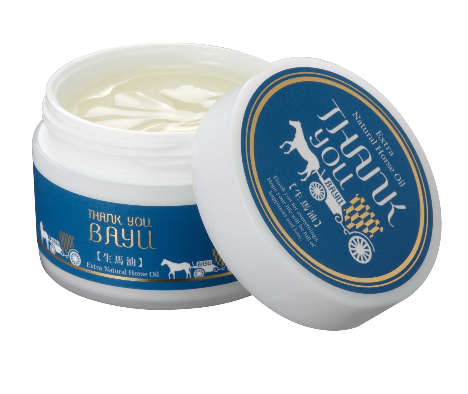 サンキューバーユの「こうね100%生馬油」は、一頭の馬からわずか数キロしか得ることができない※、馬刺しとしても食される希少な部位「こうね(タテガミの根元)」の油脂のみを原料に、酸化防止剤・保存料・香料などの添加物を一切使用せず、国内で丁寧に精製・精油した100%天然オイルです。古くから火傷や乾燥肌などのケアに使われている一般的な馬油と比べ、においが少なく、サラッとしているため、美容オイルとしても愛用されています。(※一般的な馬油は馬一頭1,000㎏から腹・尻部を中心に約200kg得られる)