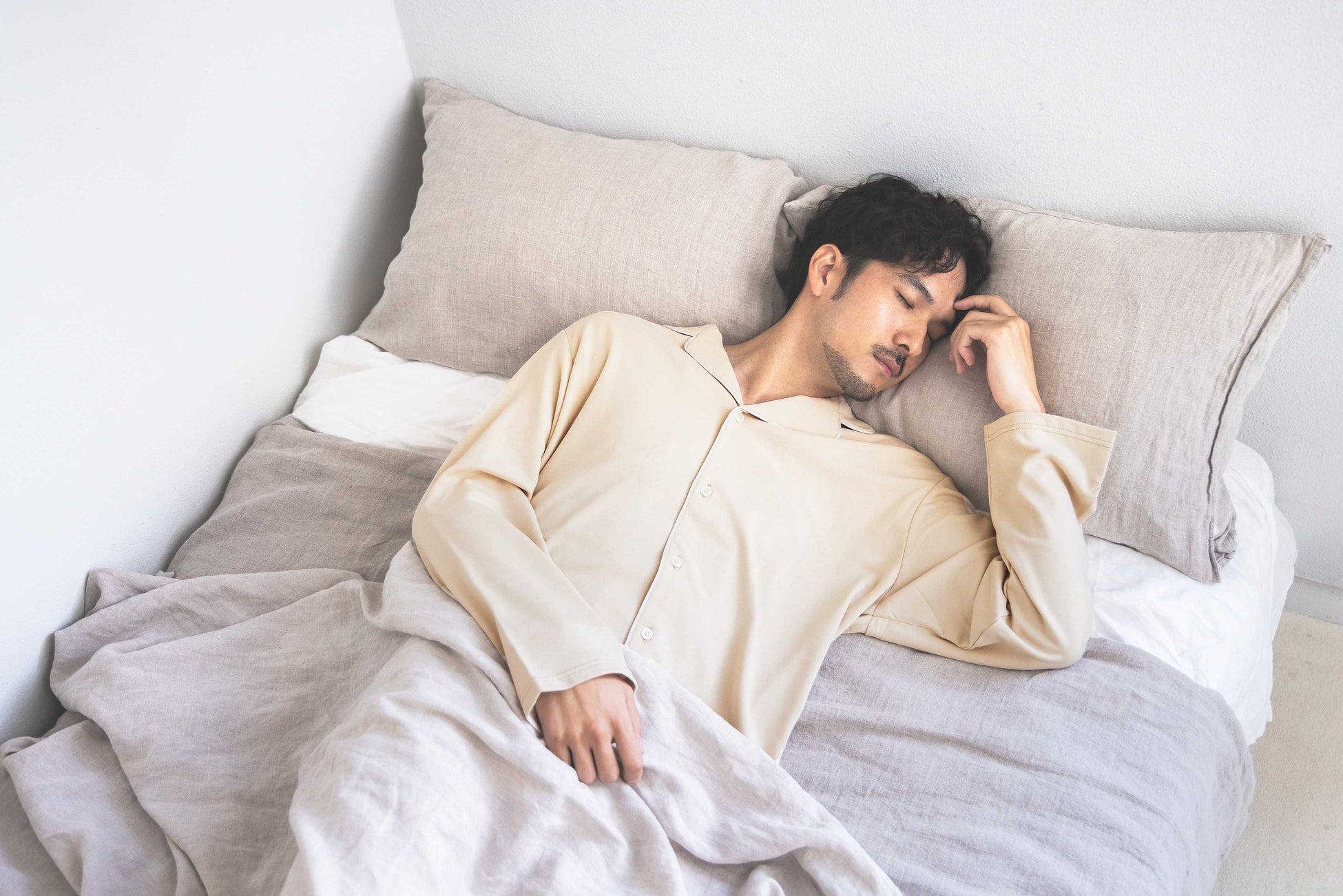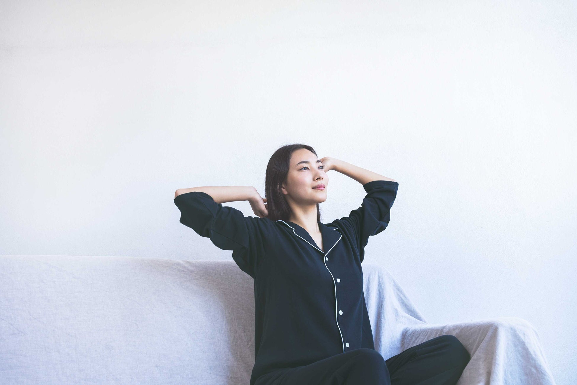 質の高い睡眠環境に必要とされる自然な寝返りを妨げないために、肩や腕回りの形状にこだわった独自のパターンを採用。ウェアに連動性を与えることで、自然な寝返りをサポートします。