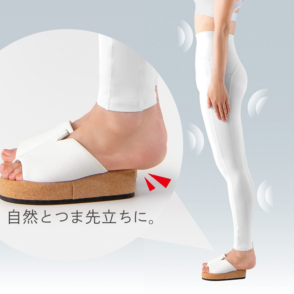 かかと部分が短くカットされているので、履くだけで自然とつま先立ちになって、体幹を鍛えられます。