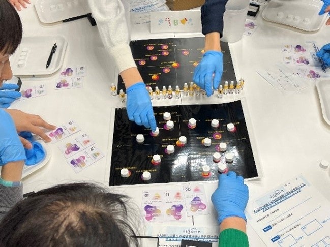 fibona open labでは、資生堂研究員が主催する共創ワークショップとして、fibona・SCENTMATIC・Library Designの3社のコラボレーションによるワークショップが開催されました。体験型ワークショップの中では、今の自分を香りで表現するために、KAORIUMを活用することで自分の感性と向き合い、研究員のダイレクションのもと香りの好みを読み解き、紐解いた感性からオリジナルのアロマオーナメントをつくりました。先着制での整理券配布も早々に終了し各日超満員にて実施されました。