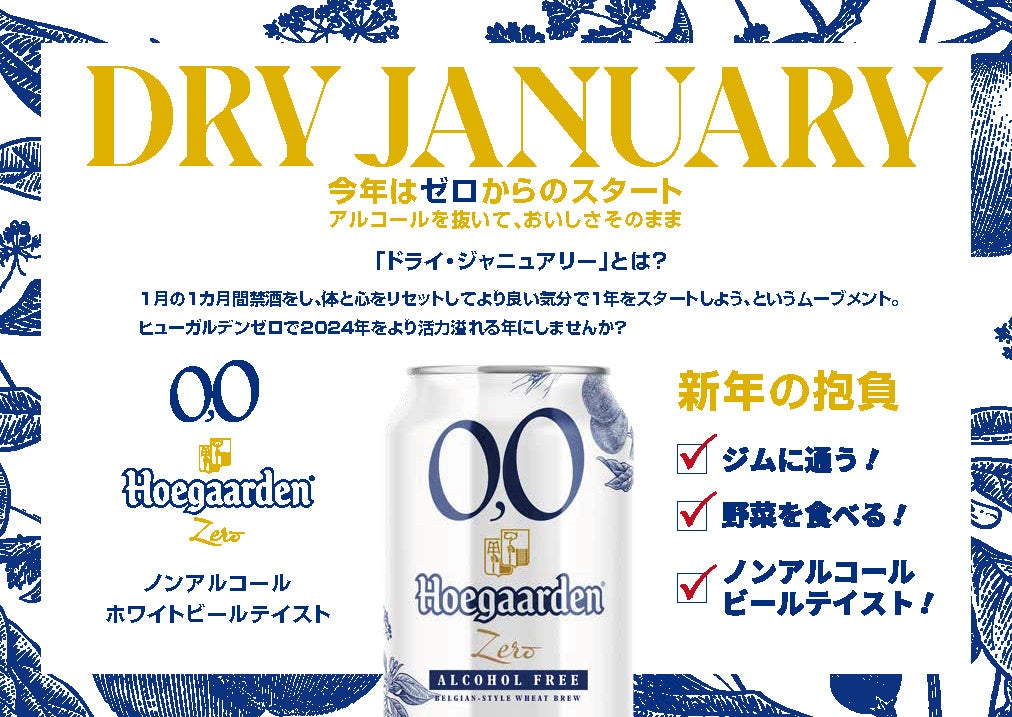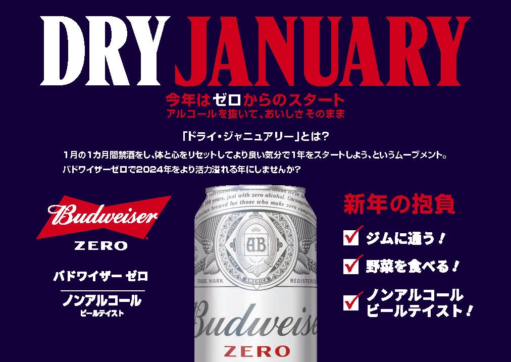 AB InBev Japan合同会社様はグローバルブランドのノンアルコールビールテイスト飲料としていち早く22年7月に「Budweiser ZERO(バドワイザー ゼロ)」「Hoegaarden 0.0(ヒューガルデン ゼロ)」を販売開始しました。昨年に続いて本年もドライ・ジャニュアリーイベントに参加いただく運びとなりました。