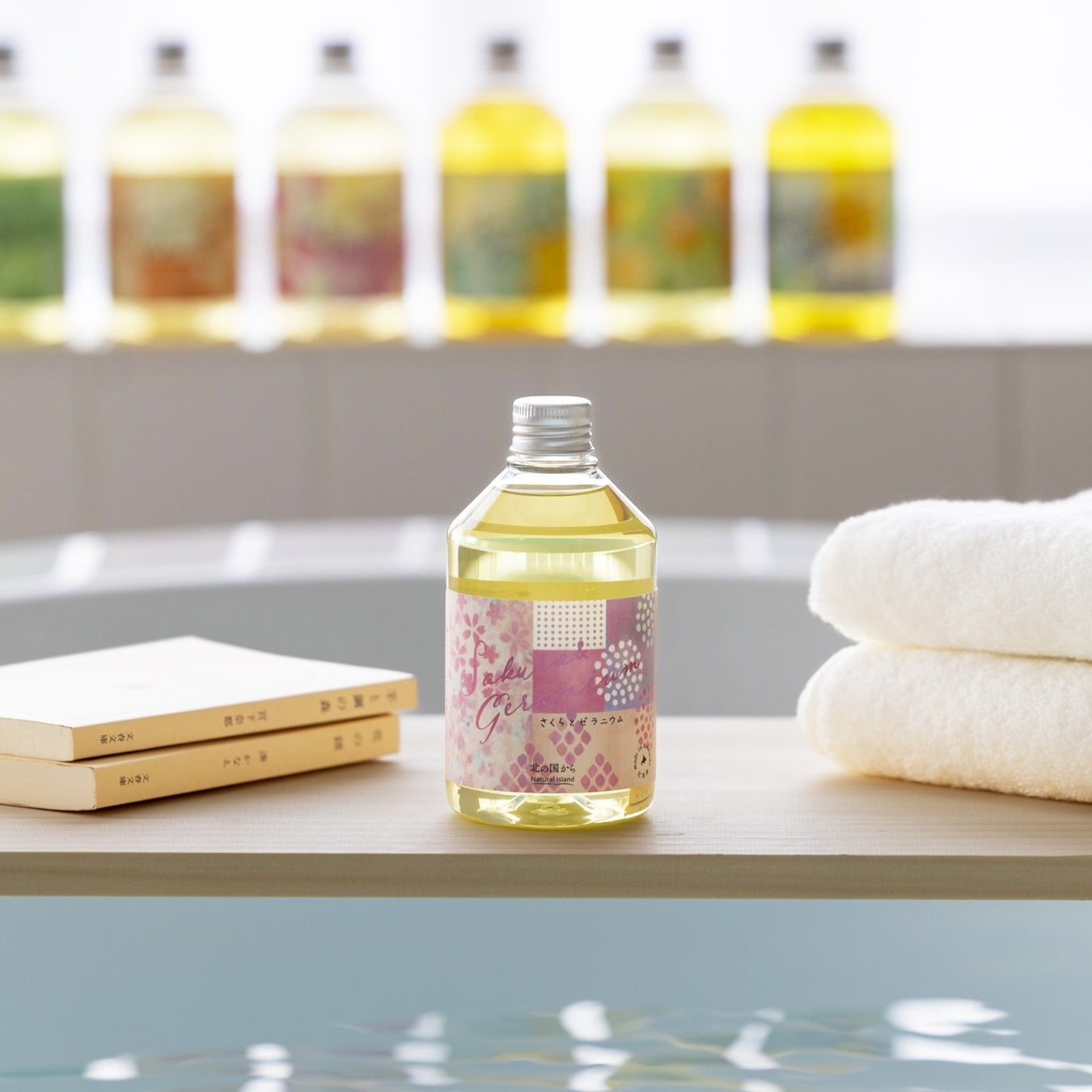 咲いてもすぐに散ってしまう八重桜の花びらをイメージした、ふんわりつつまれるような桜の香りに、ゼラニウムやハーブをブレンドした「さくらとゼラニウム」。寒い冬を乗り越えて春に芽吹く花と、グリーンの爽やかでほんのり甘いピュアな香りです。桜の花エキスと酒粕エキスを組み合わせることで肌にふっくらとしたハリ感をもたらします。初夏に向けて生き生きと花咲く春の香りを満喫して。