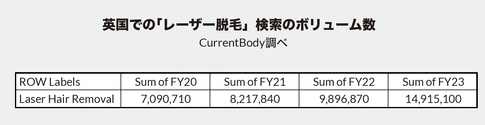 当社の市場調査では、効果を実感できる家庭用の「レーザー脱毛」機器は少なく、市場のニーズを満たしていない現状が明らかとなりました。2023年の「レーザー脱毛」の検索結果は1400万件で、「最も効果的な家庭用レーザー脱毛器」を検索すると、レーザー脱毛器ではなくIPL式がヒットしていました。(*自社調べ)