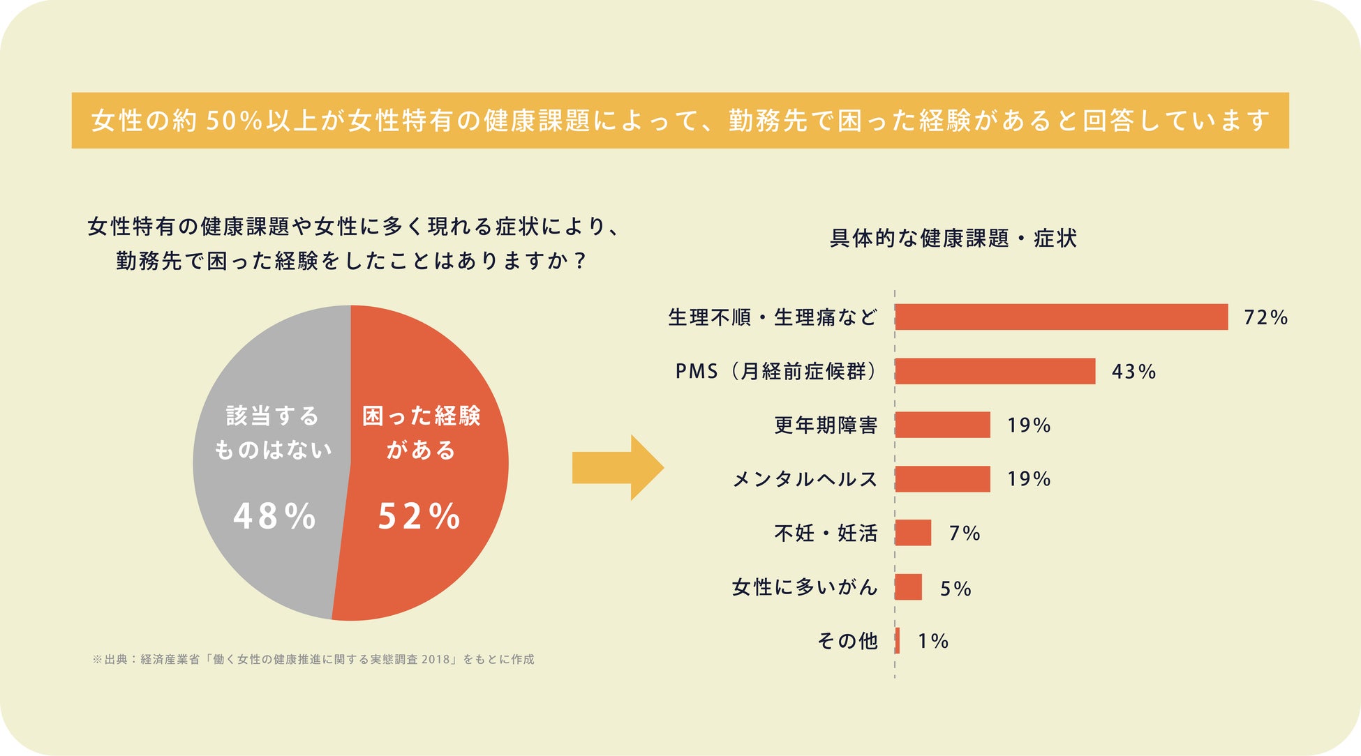 また、経済産業省出典の「働く女性の健康推進に関する実態調査2018」では、生理期間中
