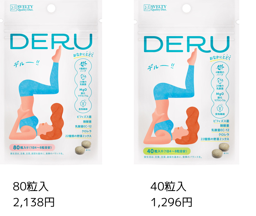 そのような背景を受け、今回新たに発売する「DERU(デルー)」は、毎朝スッキリできない3つの要因に多角的にアプローチするサプリメントです。厳選したハーブ・酸化マグネシウム・3種のマルチプロバイオティクスを配合することで、不快な悩みの3大要因にアプローチ。水分量を増やし、おなかの動きをサポートします。また、体内フローラを整えることで、不快感の解消と共にスッキリ、スマートをサポートします。