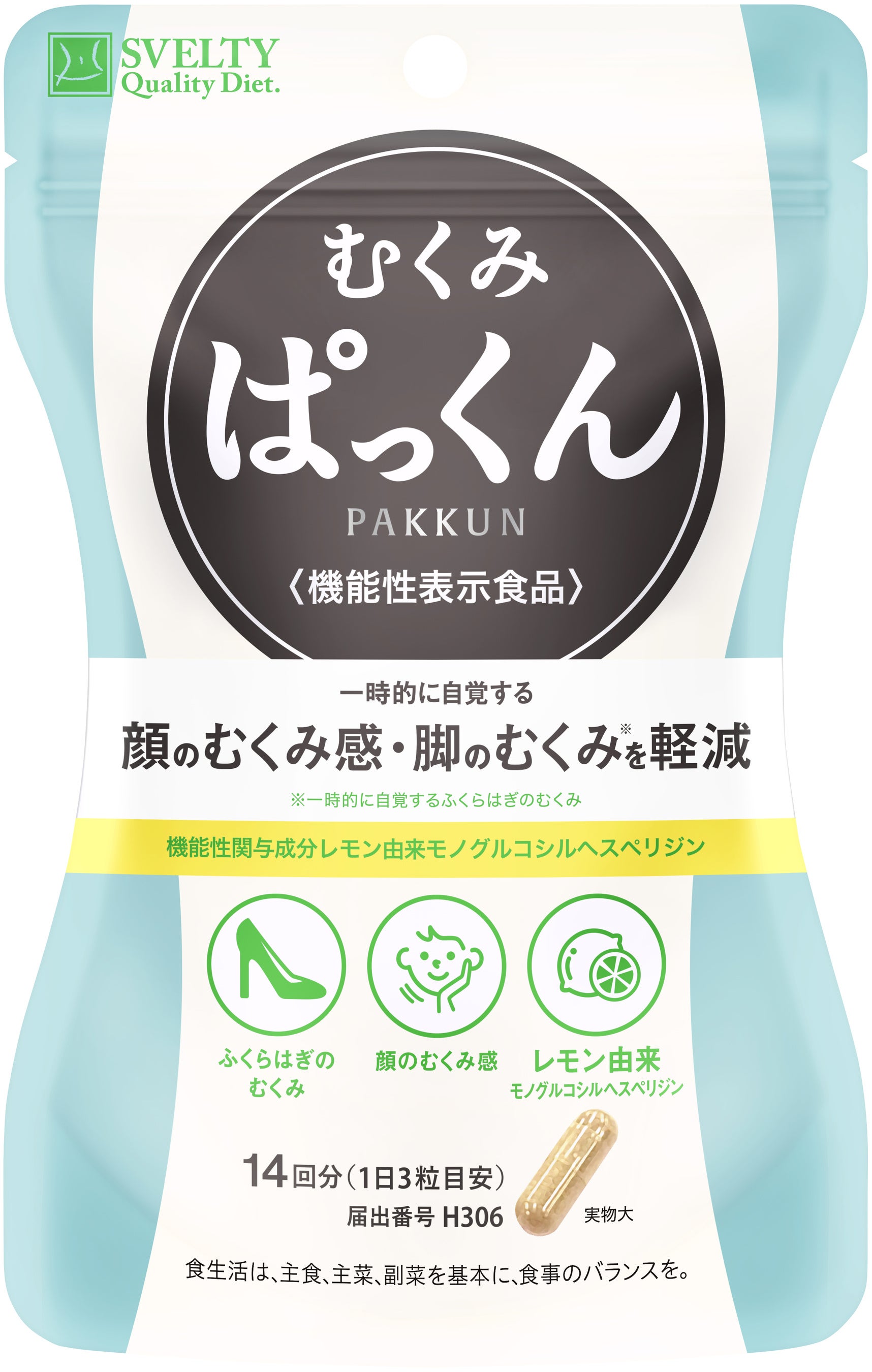 機能性関与成分「レモン由来モノグルコシルヘスペリジン」が、一時的に自覚する顔のむくみ感と脚(ふくらはぎ)のむくみを軽減します。