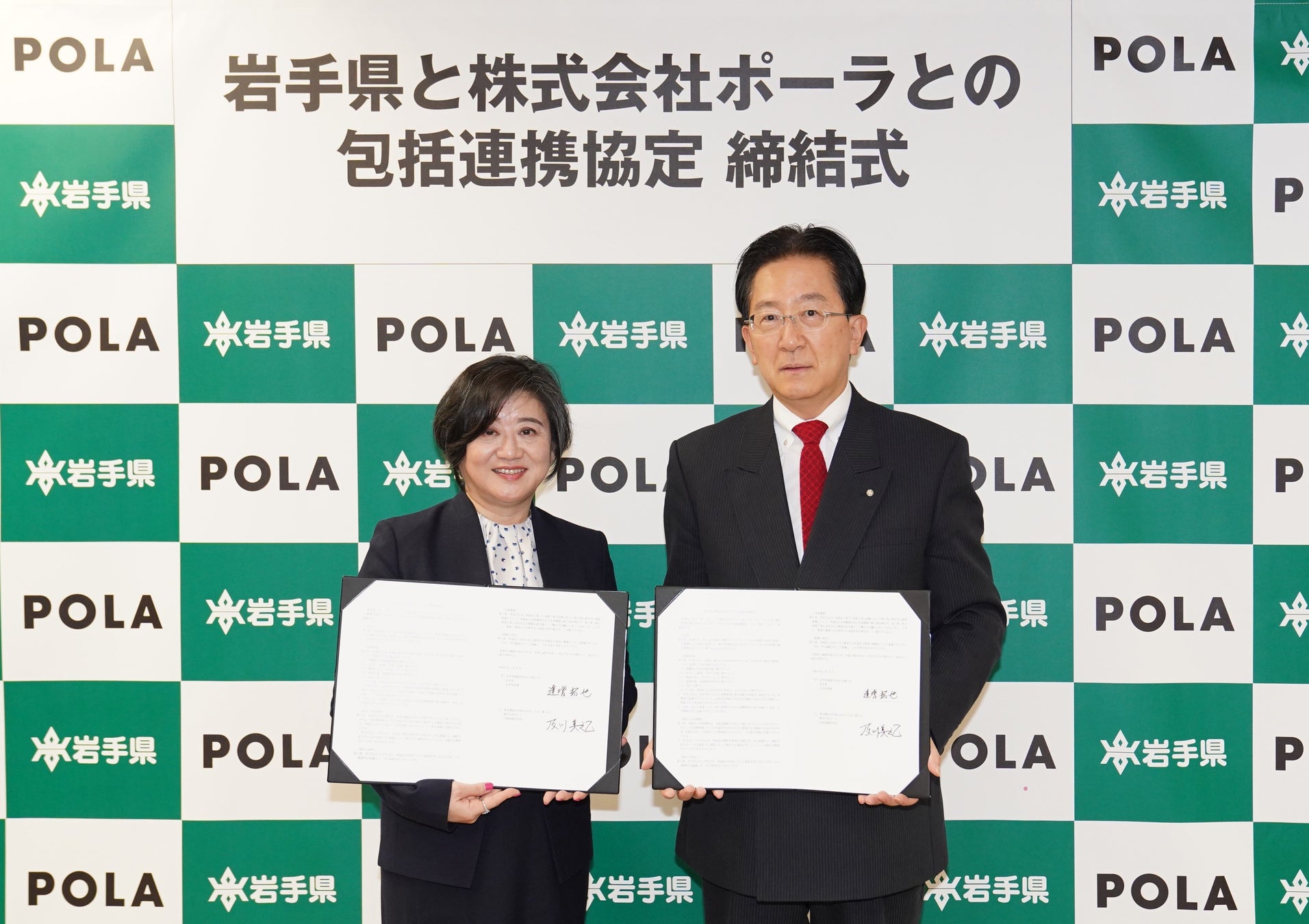 株式会社ポーラ(本社:東京都品川区、代表取締役社長:及川美紀)は、この度、岩手県(知事:達増 拓也)と、双方の資源を有効に活用した協働による活動を推進し、一層の地域活性化と県民サービスの向上、持続可能な地域社会づくりに取り組むことに合意し、包括連携協定を締結しました。