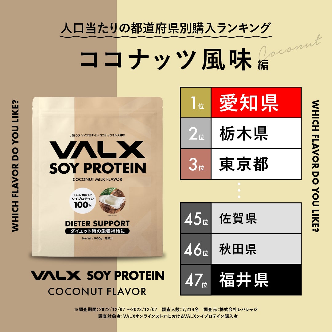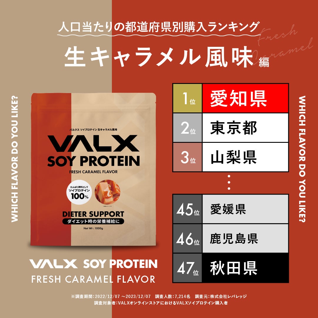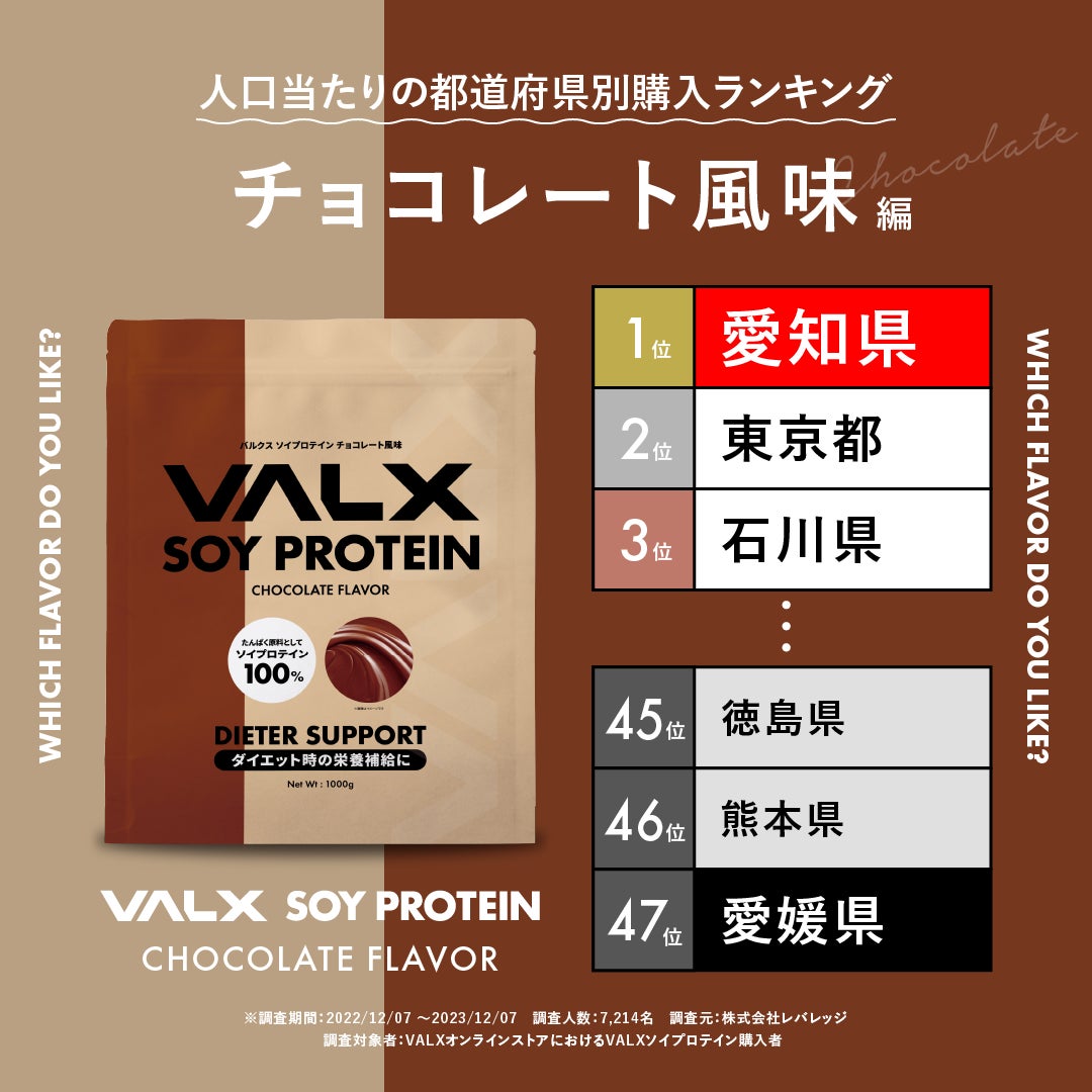 前回発表したVALXホエイプロテインのランキングでは、どのフレーバーも東京が1位を独占した一方で、ソイプロテインは愛知県や山梨県等フレーバーによる県民性がみられました。