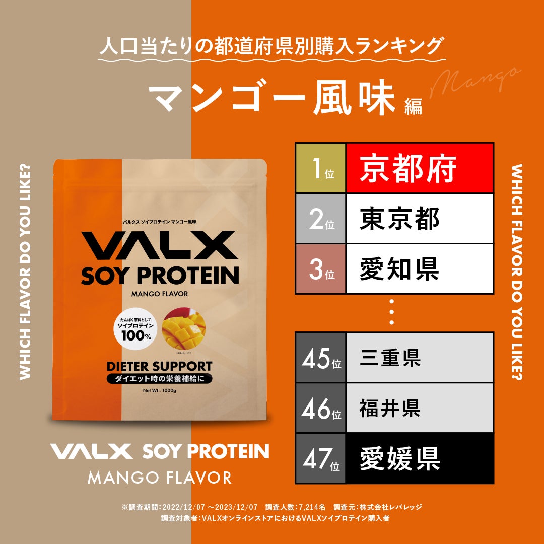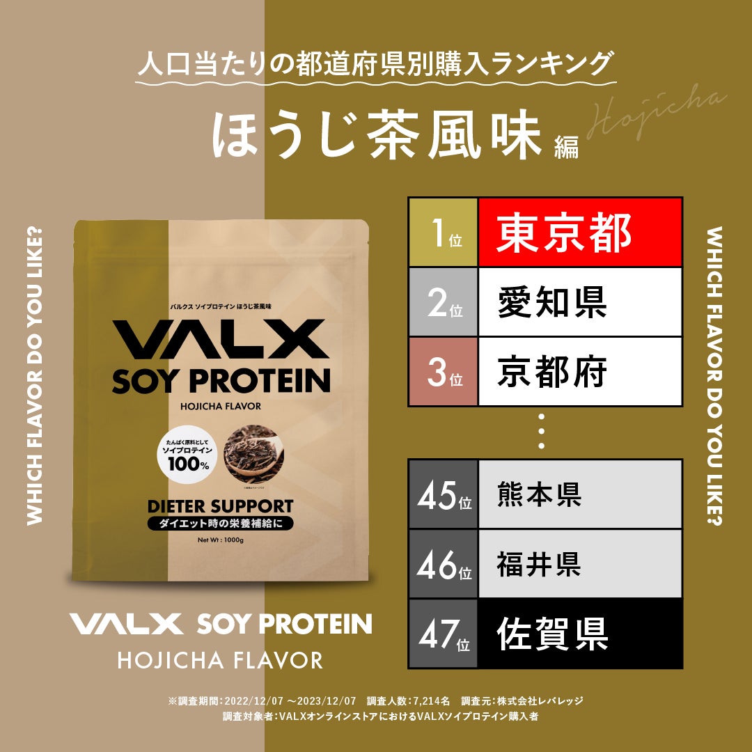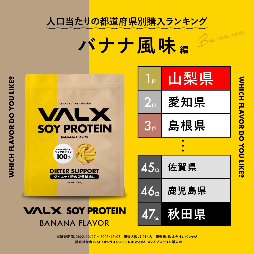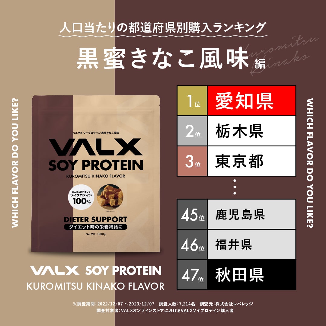 前回発表したVALXホエイプロテインのランキングでは、どのフレーバーも東京が1位を独占した一方で、ソイプロテインは愛知県や山梨県等フレーバーによる県民性がみられました。