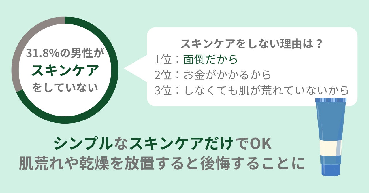 ・31.8%の男性がスキンケアをしておらず、その理由第1位は「面倒だから」