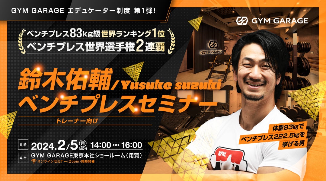GYM GARAGE エデュケーター制度 第一弾は、「鈴木佑輔 ベンチプレスセミナー」
