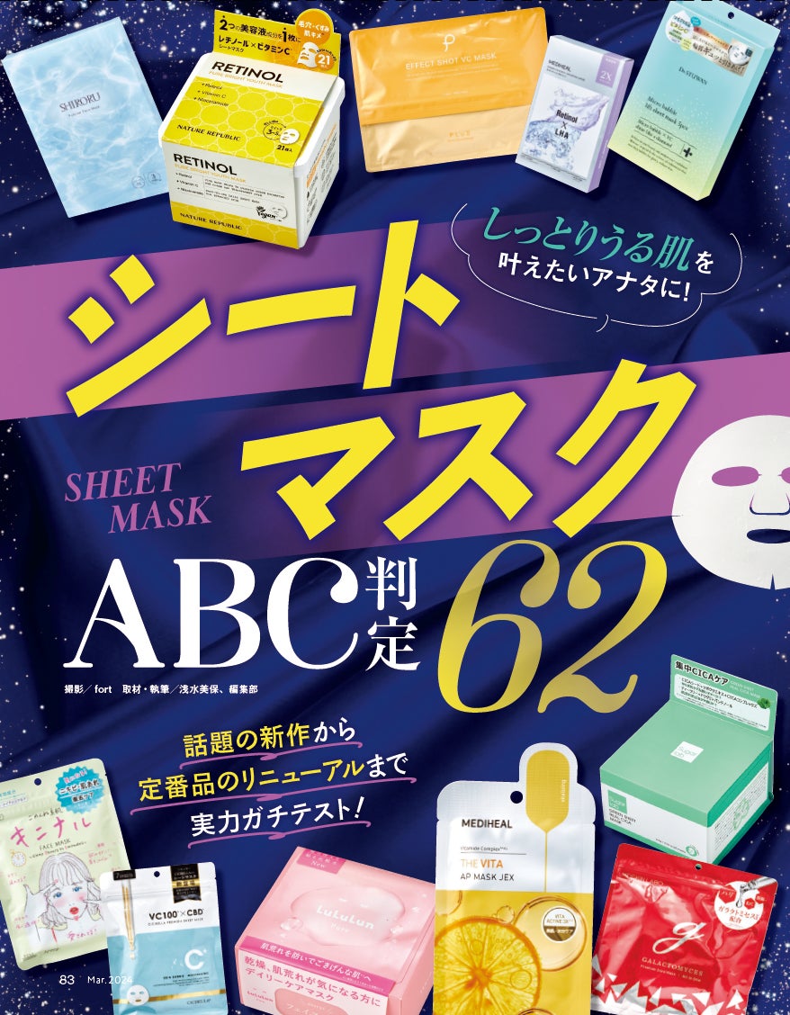 話題の新作から定番品のリニューアルまで、シートマスク62製品の実力をガチテストしました。お肌がバッチリうるおえば、メイクのりもアップ!そんな美肌に近づける最強マスクを発掘します!