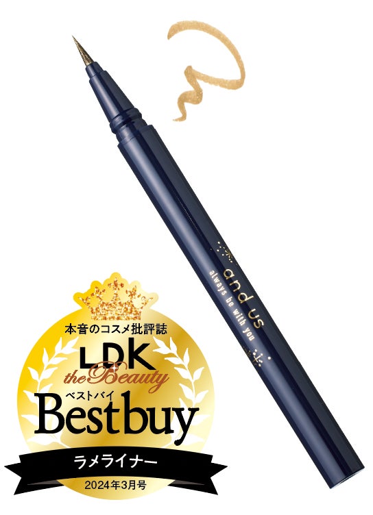 スリコのラメライナーは筆のしなりがよく、お手頃でストレスのない描き心地が優秀。特に02は、瞳がキレイに見える珍しいヘーゼルカラーが最高!透け感も今っぽくて旬の目元になれます。