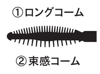 目の粗い束感コームを根もとにあて、そのまま軽く左右にジグザグさせると、束感ロングまつ毛がたちまち完成。